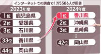 【小さな話題】香川県が一位と言えば? 香川県が日本一というと、都道府県の中でいちばん面積が小さいということしか浮かばないが、少し前に視聴したYouTube動画: ●KSB瀬戸内海放送【解説】国内旅行満足度 香川が1位に 急上昇の鍵は「うどん」と「お得感」 ●香川NOW【カガワナウ】【香川県が日本一!?】全国ランキングで1位になった意外な項目10選!うどんだけじゃない香川の実力 によれば、なっなんと日本国内の総合的な旅行満足度で日本一になっていたという。もっとも、総合満足とは別に9項目に分けて魅力度を調査した結果では、香川県がトップ10入りしたのは「地元ならではのおいしい食べ物があった」と「食と子どもが楽しめるスポットや施設・体験があった」の2項目のみであり、Top10入りと言っても「食べ物」は7位、「子どもが楽しめるスポット・施設・体験」は8位であって、そんなに上位というわけではなかった。 以上について公式報告のなかでじゃらんリサーチセンター(JRC)主席研究員の森戸香奈子さんは以下のように解説しておられた【要約・改変あり】。