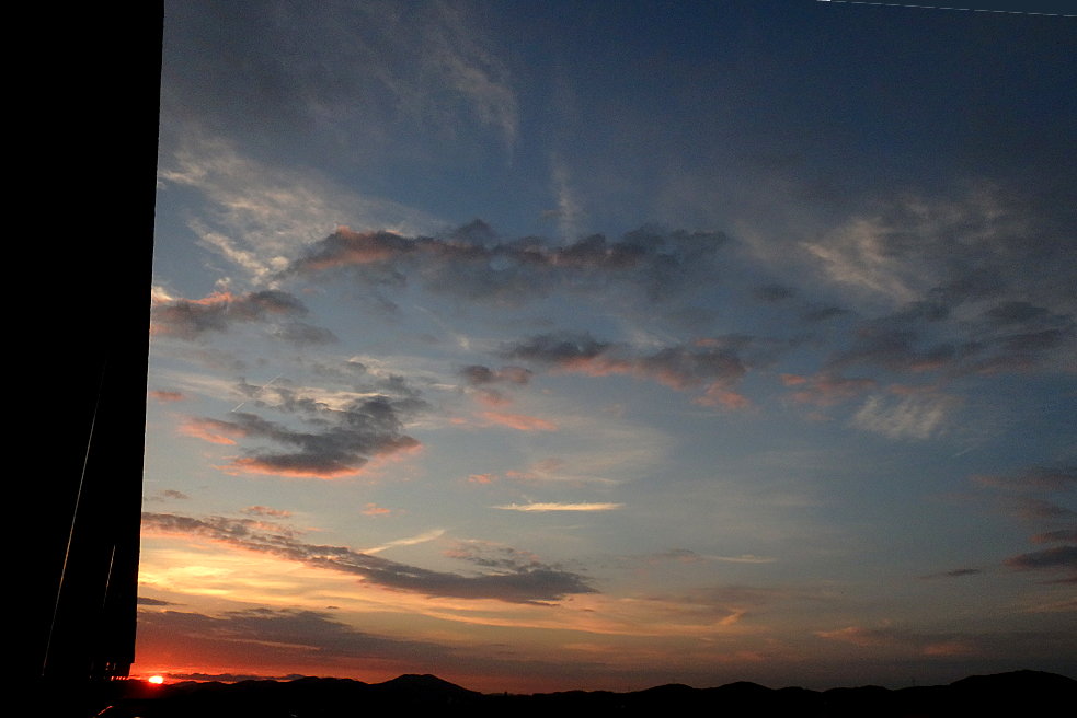 9月16日の日記に、 バルコニーが南向きになっているマンションでは、いくら高層であっても、秋分の日前後から春分の日前後までの半年しか、日の出を眺めることができない。理由は、春分の日から秋分の日までは日の出の方位が真東より北側にあるため、地平線から昇る太陽が自分が済んでいる建物の影になってしまうからだ。これは全国どこのマンションでも、バルコニーが真南を向いている限りは同じ。と記したが、いよいよ日の出が見える季節がやってきた。日の出の方位はまだ真東よりはいくぶん北に偏っているが、