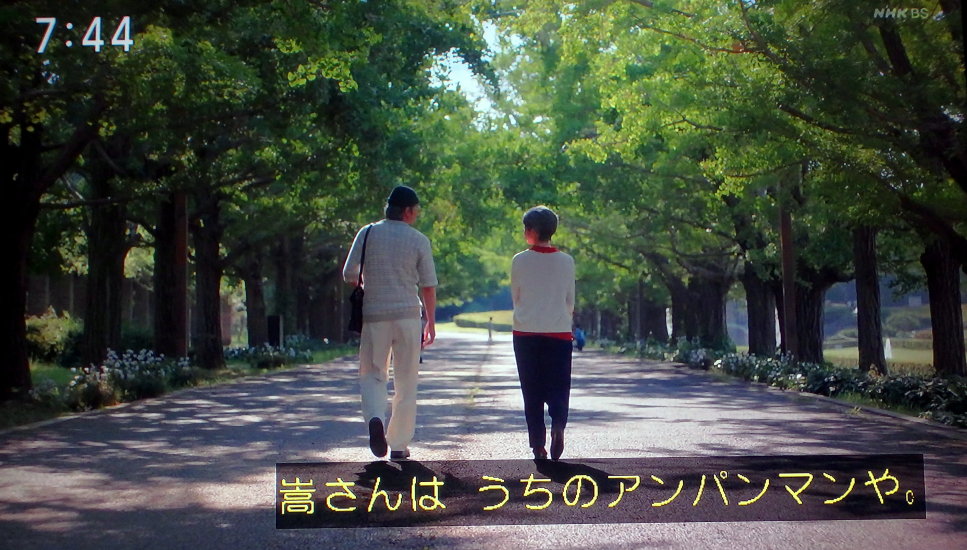さて、各種情報によれば、ラストの撮影時、2人が並木道【←ロケ地は昭和記念公園】を歩いている時に、のぶの「今日のお昼は何にする?」というアドリブがあったそうだが、カットされたという。ネットで検索したところ、こちらには放送されていたという記述もあったが、私が録画映像を複数回チェックした限りではやはりカットされてしまったようである。