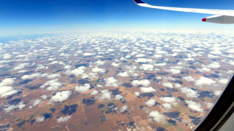 【2025年10月】オーストラリア南西部・フラワーハンティング(6) パース着陸の少し前、眼下に同じ形・大きさの雲が一面に広がっているのが見えた。ネットで検索したところ、『高積雲』と思われる。 |