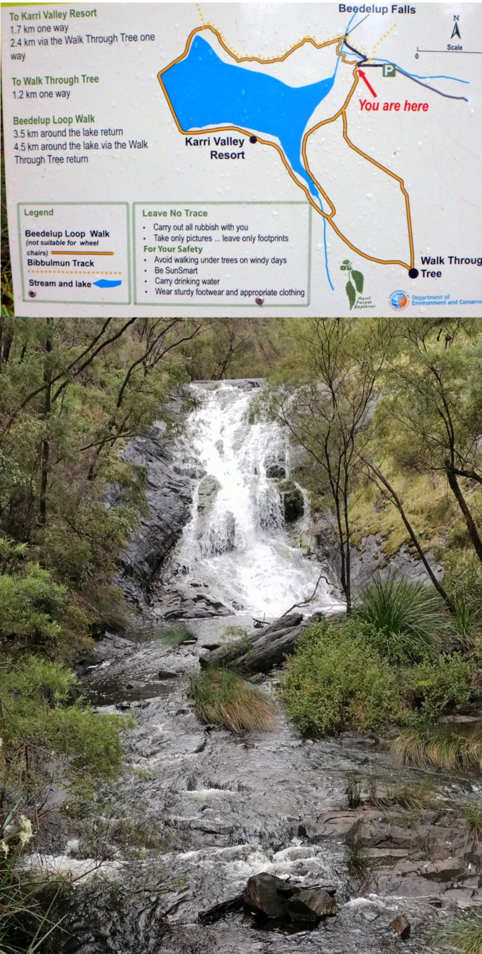【2025年10月】オーストラリア南西部・フラワーハンティング(31)RACカリー・バレー・リゾート(2)湖を一周しビーデルップ滝を見る カリー・バレー・リゾートでは、到着日の夕刻と翌日朝の2回、レイク・ビーデルップを一周した。 道は整備されており、一周は3.5km。一番奥まったところに『ビーデルップ滝』(写真下)があった。このほか道沿いでは珍しいオーキッドの花が咲いていた。 |