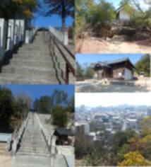 2月21日の午後、岡山市北区三門中町にある國神社を初めて参拝した。山の頂上にあり、「近郷に比類のない立派な堂々とした石段」が特徴。私が数えた限りでは全部で158段あった。 |