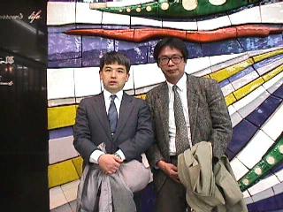 ![]() | ぴったんこ氏(右)と私(左)。床屋に行ったばかりなので、前回の写真とは顔が変わっている。私は滅多にネクタイをつけないが、この日は仕事の事情により、やむをえず着用。息子(左)の大学卒業に付き添う父親(右)の写真には見えんかいな。 |