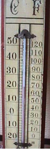 私が生まれる前から現役で活躍している温度計。右側の「華氏」の目盛がついているのがハイカラなところか。それにしても、日本で「摂氏」、米国で「華氏」が定着しているのはなぜだろう。長さや重さの単位などを含めて考えると、あるいは日本は国際的な度量衡単位普及の優等生になっているということだろうか。