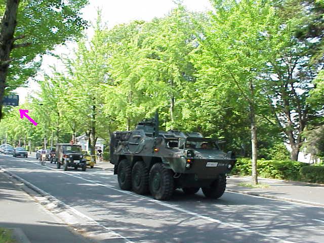 5/16の朝、岡大の南北通りの新緑風景を撮ろうと思っていたところ、偶然装甲車がやってきた。一瞬、戦争でも始まったのかと思ったが、半田山の後ろ側にある自衛隊施設に移動する途中なのであろう。