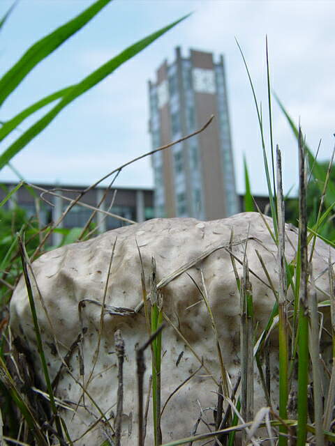 大学構内の珍しいキノコ第二弾。このキノコは毎年、時計台前の芝地に出現する。キノコに詳しい方からの情報により、キクメタケであることがほぼ確定。キクメタケの名前の由来はひび割れで区切られたところの模様が菊の花に似ているから、だそうだ。