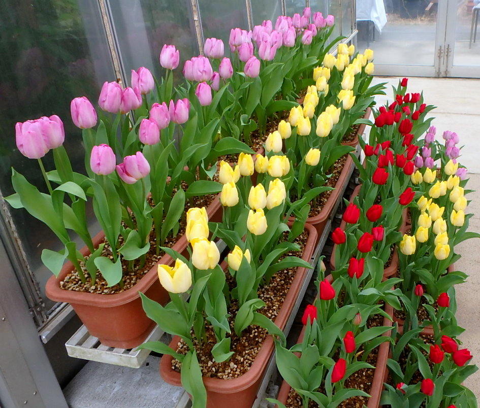 半田山植物園の温室にチューリップが登場した。ちなみに、1月26日の岡山の最低気温は5.5℃、前日の25日は3.4℃というように暖冬傾向が続いている。この傾向は1月末まで続く見込み。 |