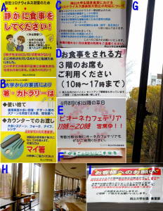 岡大・生協食堂では3月中旬から、サラダバー中止、ラップフィルム使用といった新型コロナウイルス対策がとられてきたが、4月中旬よりさらに以下のような対策が追加された。