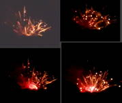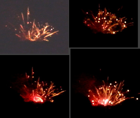 今回の方向からの打ち上げは、手前に三野公園・天神社の山があるため、噴火しているように見えてしまう。 |