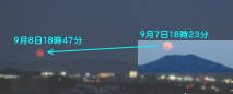 9月7日と9月8日の月の出の方位と時刻の比較。↓の記事参照。 |
