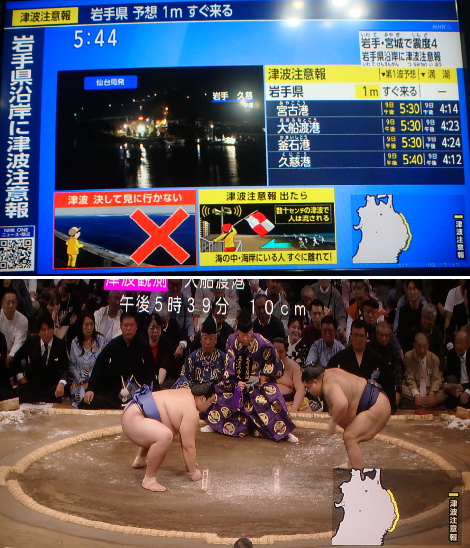 ●最大震度4、津波注意報が発令されるという地震は、大相撲中継を打ち切るほど重大な事態であったのか?