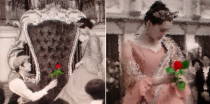 まず1.であるが、バラの花が最も効果的に演出されていたのは『今夜、ロマンス劇場で』のラストシーンではないかと私は思う【上の画像参照】。ラストのところで牧野(坂口健太郎)は赤いバラを持って美雪(綾瀬はるか)の宮殿を訪れるが、美雪が差し出された花を受け取った瞬間、それまでのセピア色がみるみるうちにカラフルな世界に変わっていった。こればっかりは花の色は赤に限る。白色のバラでは全く意味をなさない。