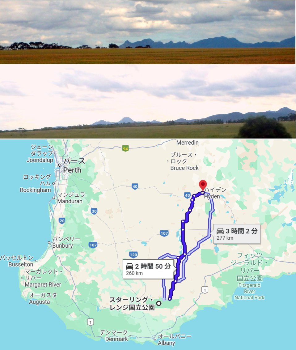 【2025年10月】オーストラリア南西部・フラワーハンティング(17)西オーストラリアにも1000m級の山があった この日の宿泊先アルバニー(オールバニ)に到着する1時間ほど前、両側の車窓にそれぞれ連なる山々が見えていた。 このうち左側【写真上段】に見えていたのはスターリング山脈であり最高峰のブラフ・ノールの標高は1059mもある。翌日、車で中腹まで訪れたが、できれば頂上まで登りたかった。 右の車窓【写真下段】に見えていた山々もかなりの標高がありそうに見えており、中には富士山型の形のいい山もあったが詳細は不明。 |