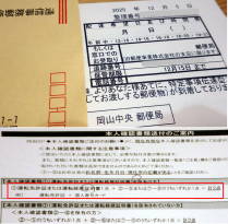 クレジットカード受け取りに際して送られてきた『本人限定受取郵便物』と再送付のために提出を求められた書類。↓の記事参照。 |