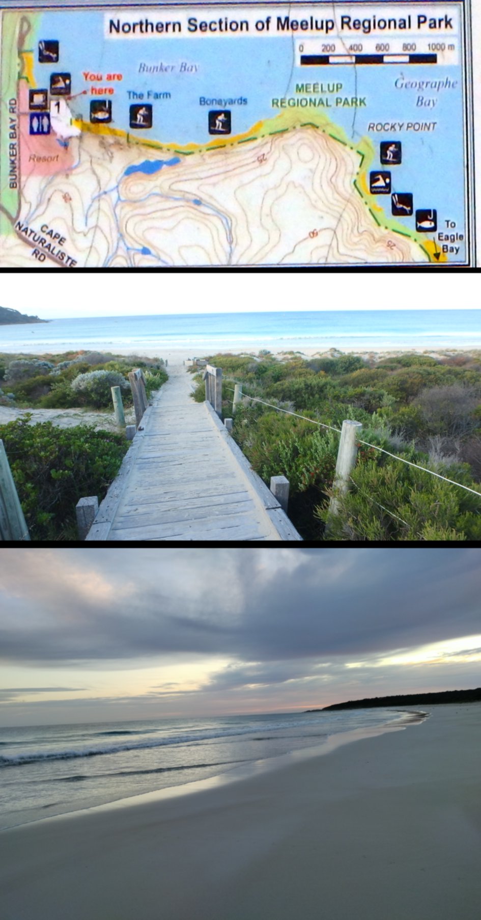 【2025年10月】オーストラリア南西部・フラワーハンティング(33)マーガレットリバーの海岸 このツアーでは最後に、マーガレットリバー近郊の『Pullman Bunker Bay Resort』のコテージに連泊した。海岸に面しており、2日連続で早朝の砂浜を散歩することができた。 なおマーガレットリバーはインド洋の東の端に面しているためインド洋に沈む美しい夕日が見られるのではないかと予想していたが、宿泊した施設は半島の東側にあるため、じっさいには日の入りは見えなかった。日の出のほうは2日目の朝にしっかり眺めることができた。 |