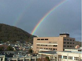 ![]() | ぴったんこ氏の岡山到着を歓迎するかのような虹。17時8分ころ撮影。 |