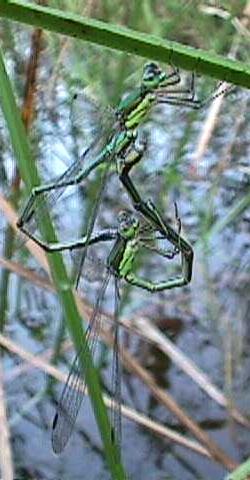 10/25の朝日新聞で「第12回全日本トンボフォトコンテスト」の話題が取り上げられていた。そういえば、東京に行った時にこんな写真を撮ったことがあった。図鑑によれば、トンボは交尾の前後でさまざまな「体位」をとるようだ。よくこんなに体が曲がるものだと思う。ハートを逆さにした形の輪を作っているところがユーモラスにも見える。種名をご存じの方、お教えいただければ幸いです。 |
