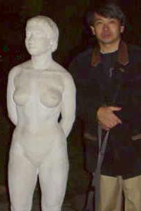 文学部まで往復。に書いた旧・将校集会所解体工事現場に立ち寄り、気味悪がる妻に頼み込んで12/12の日記に書いた石膏像と記念撮影。この像、これから先どういう運命を辿るのだろうか。
