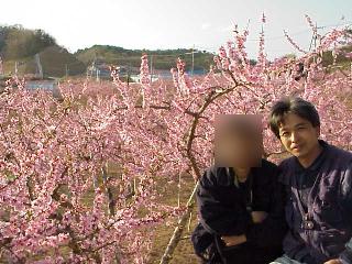 自宅アパートから車で20分ほどのところにある岡山の「桃源郷」。ここに咲く花はみな実を採るための桃の花。今が見頃だ。数日前の夕刻、夫婦で見物に行った。 |