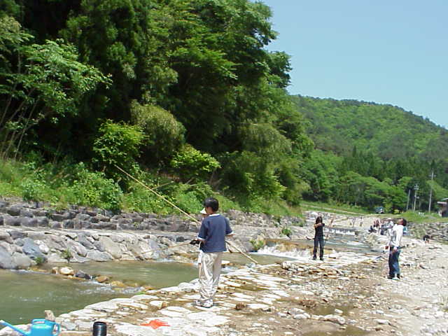 990530(日)[生活]川釣り初体験で「生と死」を考えるわたし 昨日のボウリングに引き続いて息子のほうからのリクエストにより県北勝田町のトム・ソーヤ冒険村に川釣りに出かける。 私はこれまで釣りには殆ど縁がない。記憶を辿ってみても、25年前に淡路島のユースホステルでアジ釣りを試みたことと、数年前に瀬戸内海の本島で投げ釣りを2回体験しただけ。計3回の体験で釣れたのはキスが1匹だけというお粗末さであった。川釣りに挑戦するのは今回が初めてとなる。 私が釣りをあまり好まないのは、ひとえに魚が可哀想だの一言に尽きる。水の中をイキイキと自由に動き回っている魚を釣り上げて自分の手で命を奪い取るというのは動物好きの私にとってはどうも気が進まない。とはいえ、最近もっぱら別行動を取りたがる息子からのリクエストとあれば受けないわけにはいかない。朝9時過ぎにアパートを出て途中買い物などしながら約2時間で現地に着いた。