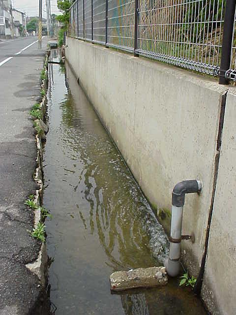 土曜日午前は、アパート前にある排水溝(写真左)の清掃当番。1時間あまりにわたって、溝の中のゴミを取り除いたり、柄付きブラシなどでヘドロ等を押し流す作業に参加した。