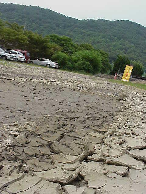 文学部西側の空き地に梅雨の長雨で水たまりができていた。先週の火曜日にここでオタマジャクシを発見。このままでは干上がってしまうと思い、そのうちの10匹ほどを近くの池などに移した。残り10匹ほどは出張後に救出しようと思っていたのだが、行ってみると、写真のようにすでに干上がっており手遅れだった。もっとも、土の上には鳥の足跡がいくつか残っていた。干上がる前に鳥の餌として食物連鎖に組み込まれていたとするなら、まったくの無駄死にとも言えまい。