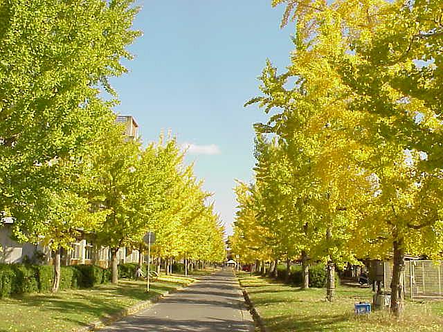 農学部南側の銀杏並木の黄葉が見頃になった。11/18〜11/19は収穫祭が開かれている。 |