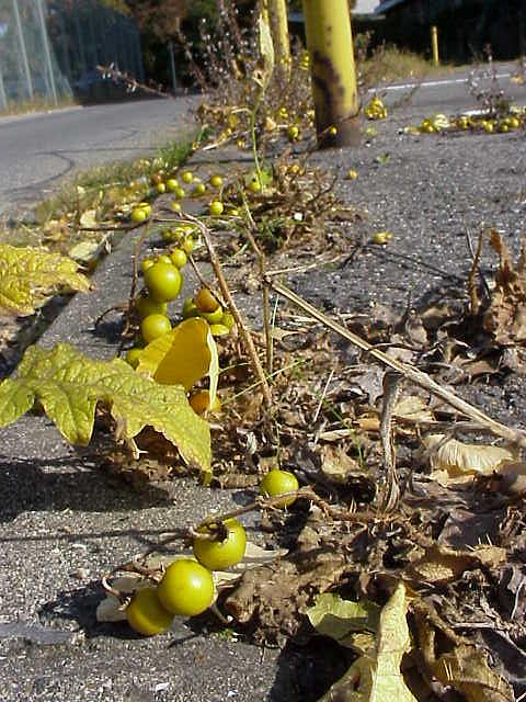 駐車場の隅に点在するワルナスビの実。昨年6月11日の日記にこれにまつわる子育ての失敗談がある。 |