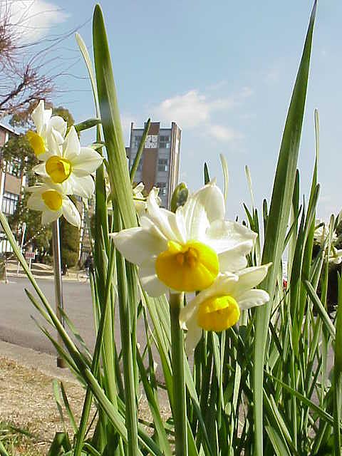 時計台近くの水仙。2/11に一度御紹介したものの晴天バージョン。 |