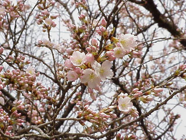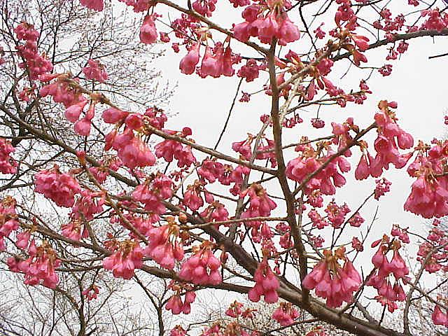 京都府立植物園で撮影(3/24)した桜の花2題。左は寒緋(カンヒ)桜。別名「ヒカン桜」とも言うが、彼岸桜と区別するために最近では「カンヒ」と呼ばれるようになっているとか。釣り鐘型で下向きに咲くのが特徴。右は「カラミザクラ」。ちょうど咲き始める所だった。 |