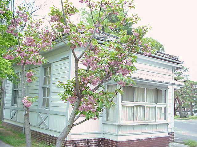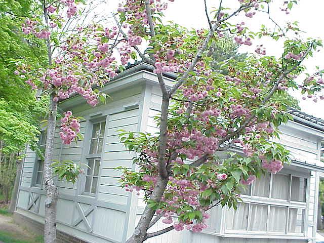 岡大事務局前にある「六高菊桜」。岡大構内七名樹を選ぶとしたら真っ先に候補に挙がりそうな由緒ある桜だ。右は一年前に撮影したもので、昨年4/30の日記にアップしてある。一年前とほぼ同じ枝振りだが、花のつきかたが微妙に違う。 |