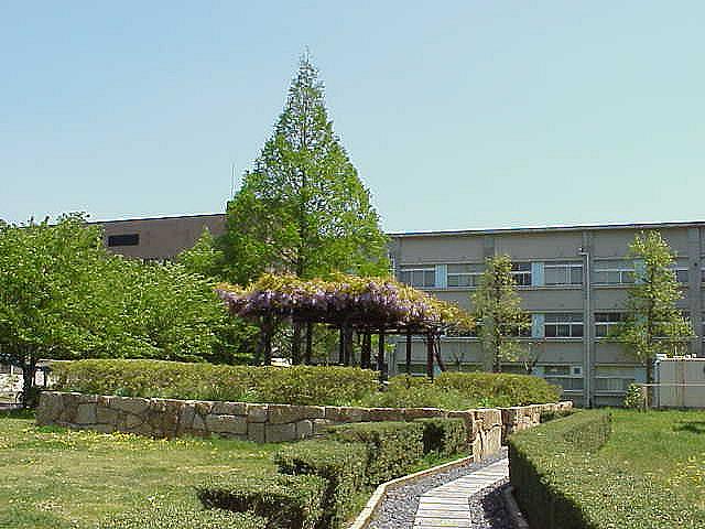 文学部中庭の藤棚。花は綺麗なのだが、クマンバチが群がっていて、棚の下のベンチで読書をするには勇気がいる。ちなみに、ここ数年、藤棚の後ろにある円錐状の樹木が妙に目立つようになった。たぶんメタセコイアだと思う。 |