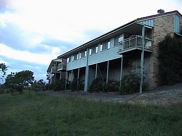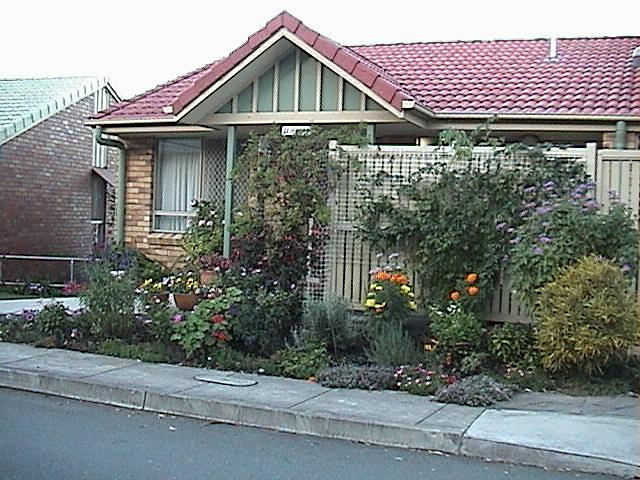 ブリスベーンにある戸建て型の高齢者入居施設。園芸療法と呼ぶまでもなく、各戸の玄関先には色とりどりの花が植えられていた。裏側(写真右)から見ると長屋風の作りになっていることが分かる。ブリスベンの一般住宅の多くは高床式になっており、長年住み慣れた住宅に近い作りになっているのかもしれない。 |