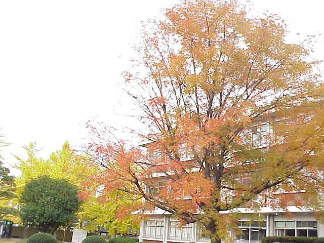 強い冬型の影響で岡山県南部は一日中しぐれ模様。北部の蒜山では雪が降ったとか。この寒さの影響で、農学部の楷の木(オス)の紅葉もそろそろ終わりとなった。なお、その北側にあるメスの木と、時計台前横の木はこれからが紅葉本番となる。 |