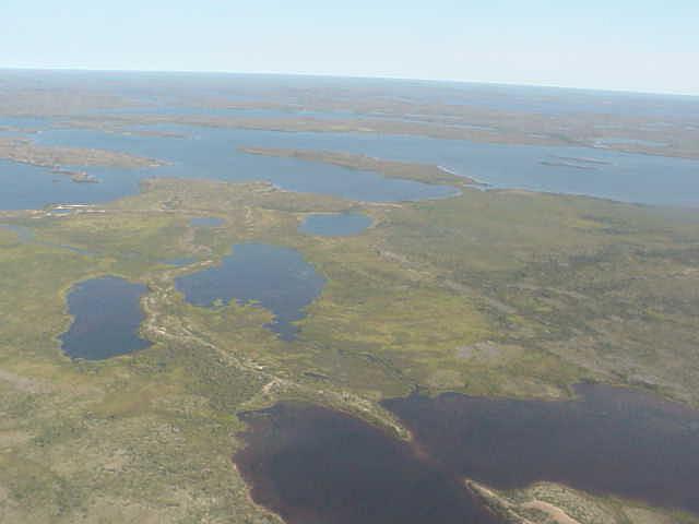 左の写真は、飛行機から眺めるツンドラ地帯。地平線まで延々と同じ地形がつながる。右上は、着陸地点でみたツンドラの様子。何種類かキノコも生えていた。右下は湖のほとり。ああいう場所で2週間ぐらいのんびりと過ごせたらいいなあと思ったが、オオカミが出没するところだとは知らなかった。