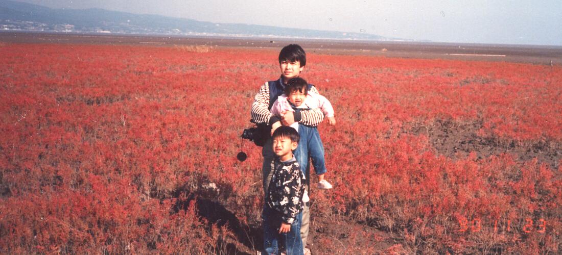 左下の写真は、1990年11月23日、諫早湾の干潟を赤い色に染めるハママツナの群落を見物に行った時の写真。こちらの風景は、干拓工事により消滅した。