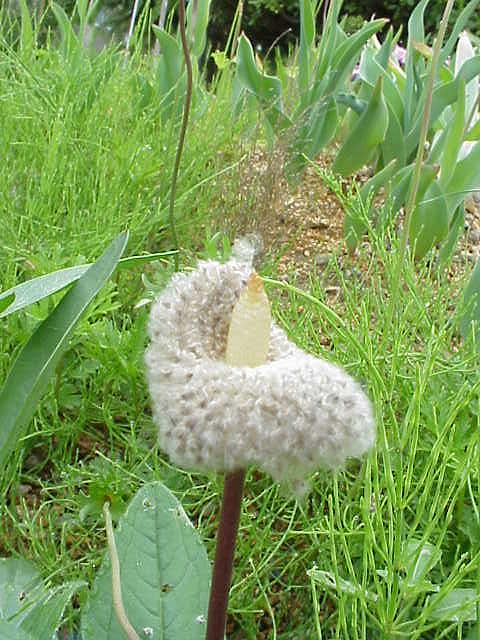 アネモネの花壇で面白い形の綿毛を見つけた。靴のようにも、ベビー用品のようにも、帽子のようにも見える。 |