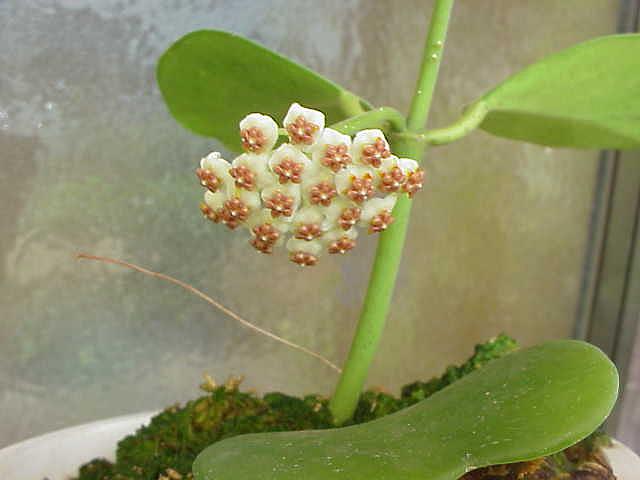 8/27の日記で御紹介したナチュラルハート(ホヤの一種の愛称)のその後。それぞれの花の中心に茶色の芯のようなものが現れてきた。 |