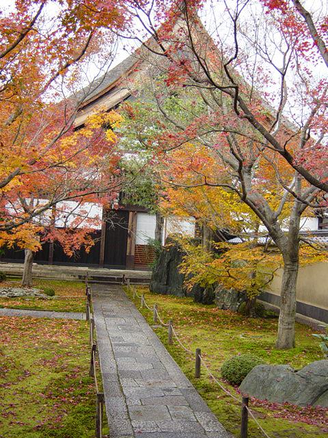 | 12/1に大徳寺を訪れた時の写真の続き。たまたま通りかかった黄梅院の紅葉が、境内の中では最も美しかったが、残念ながら拝観謝絶の看板がかかっていた。ちなみに大徳寺の拝観寺院は、いつも同じではない。この黄梅院のほか、興臨院、三玄院などは、拝観を許可していた時代があったはずだ。このほか、春秋に特別公開される寺院もある。 |