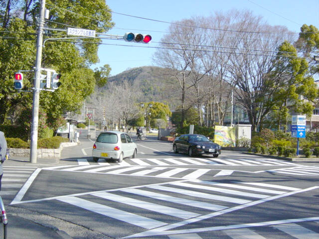 3月19日、岡大西門前(時計台前)に突然スクランブル交差点が出現した。この交差点は、休み時間などに北キャンパスと一般教育棟との間でかなりの数の学生の移動が見られる。その時間帯に限っては、南方向からの車は殆ど右折できない状態が生じていた。