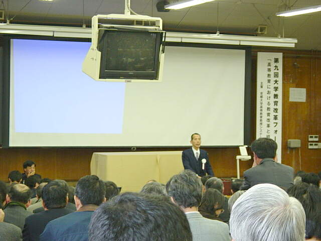 フォーラムは、長尾眞・京大総長の挨拶、田中毎実・京大高等教育教授システム開発センター教授の問題提起のあと、4名から話題提供が行われた。4名の話題提供者のうち2名は現役の学長、1名は前副学長、さらに最後には京大事務局長のコメント、というまことに豪華な顔ぶれであった。長尾総長は、13時半の開始から16時頃のコメントまでずっと御参加になった。