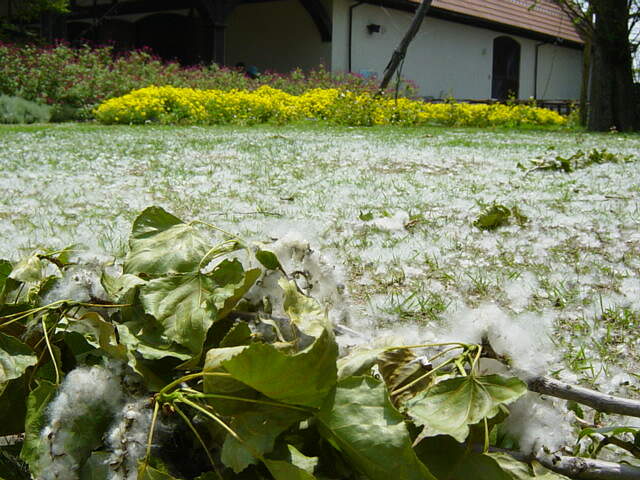 ベルクへの坂を登っているうちに、そらから白い雪のようなものが無数に降ってくることに気づいた。道脇の白く積もったものを手にとってみると何かの綿毛であることが分かった。 ベルクのイベントホール横に庭(写真右下)は、まるでちょっとした雪化粧のようになっていた。そこには何本かポプラが植えられており、落ちた枝にも綿毛がついていた。そうか、ポプラがはこういう種をつけるとは知らなかった。 念のため、帰ってからネットで調べてみたところ、ポプラの綿毛についてのサイトがいくつかヒット。北海道ではこの時期の風物詩となるらしい。 もう1つ面白いと思ったのは、ここでは、犬の入園が認められているということだ。パンフには「大人800円、小人400円、シニア400円、犬300円」(※JAF会員証があると200円割引となる)というようにちゃんと犬の入園料が明記されている。このほか、別料金で、お散歩犬の貸し出しもやっているという。テーマパークの生き残り策としてはいろいろ伝えられているが、犬と一緒というのはユニークな取り組みかと思う。 余談だが、パンフには「園内への犬以外のペットの持込みは、固くお断りします」と記されてあった。妻も疑問だと言っていたが、犬以外を持ち込もうとする人っているんだろうか。 このドイツの森、市内からは30kmにも満たない距離にあり、渋滞さえ無ければ40〜50分で行かれる。人が少なくなった分、のんびりと過ごすには最適。お気に入りのパン焼きもあり、妻は今日はここに来て本当によかったと言っていた。 |