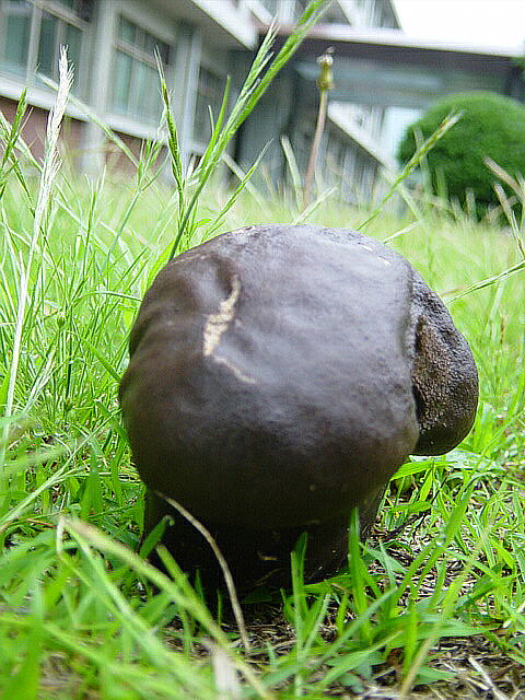 岡山では6月10日の梅雨入り宣言以来、21日(土)を除いて、毎日一度は雨が降っている。そんななか、今年もまた大学構内各所に珍しいキノコが出現している。写真右は翌日、胞子で真っ黒になったところ。この近くには、脳の標本そっくりの別種も見られた。明日以降のこの欄に掲載する予定。