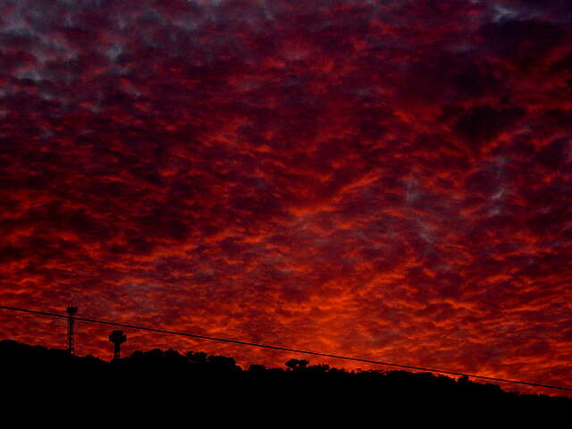 | 7月14日は、梅雨前線が南下し、久しぶりに美しい夕焼けを見ることができた。北の高気圧に覆われたため、じめじめした暑さから、カラッとした秋のような涼しさ。 |