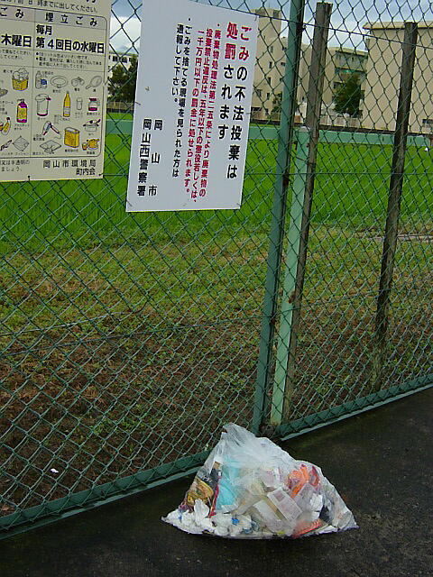 農学部農場北側のゴミ収集場所の定点観測その後。左の写真は、8月8日(金)の早朝に撮影したもの。収集日は木曜日と月曜日なので、このゴミは丸三日間ここに放置されることになる。 指定日以外になぜゴミを捨てに来るのか理解に苦しむところだが、犯人はどうやら特定人物に限られているようだ。そして、その1個のゴミ袋が置かれることによって、次々と便乗犯が出てくる。 もし住民や環境への迷惑を何も考えない人であるなら、所構わずゴミを撒き散らすはず。指定日のルールを守っていないとはいえ、収集場所まで運んでくるというからには、その人独自の「倫理観」があるに違いない。