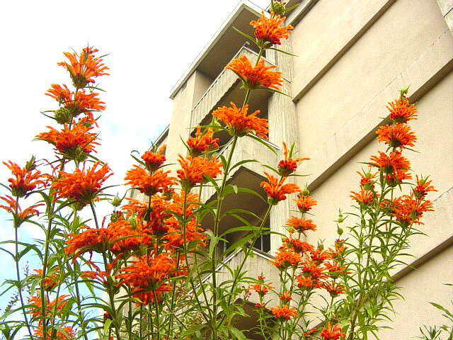レオノチス。小さな鉢植えで買った苗が毎年この時期にたいまつが燃えるような花を咲かせている。