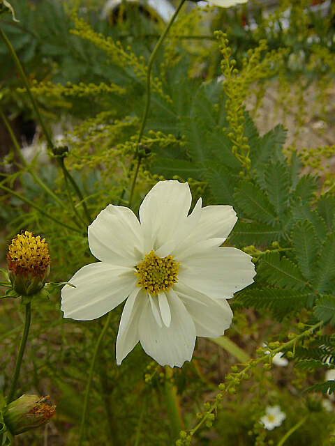 コスモスの周りには、来年の春に花を咲かせるはずのミモザの蕾がいっぱい。人生のはかなさと世代交代の宿命を感じさせるシーンだ。 |