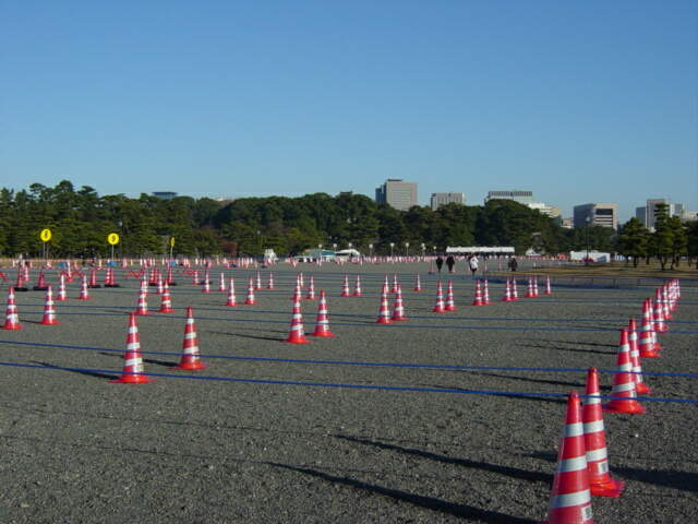 次に驚いたのが、二重橋前広場の膨大な数の円錐である。誕生日を祝うというのであれば、もう少し広場全体の美観にも気を遣う必要があると思うのだが、これではまるで道路工事現場だ。