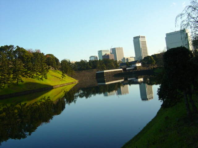 皇居二景。お堀に映る桜田門と大手町・丸の内ビル街(写真左)。生まれて初めて二重橋を内側から眺める(写真左)。