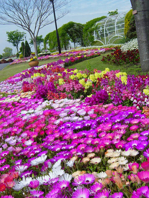 昨日に引き続き北九州市・若松にある響灘グリーンパーク園内の写真。 昨日掲載したアイスランドポピー大花壇とともに、この時期の園内を彩るのがリビングストンデージーだ。秋に種を蒔けば容易に芽が出るが、真冬の防寒対策に苦労する。また、花が終わったらすぐに摘み取るようにしないと、急速に株が弱ることがある。 |